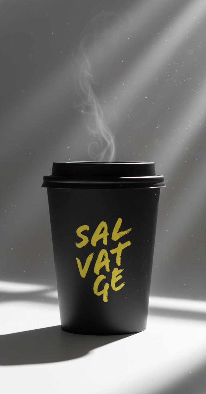 Su acabado mate negro con el icónico logotipo de Salvatge Coffee en amarillo transmite elegancia, energía y modernidad.